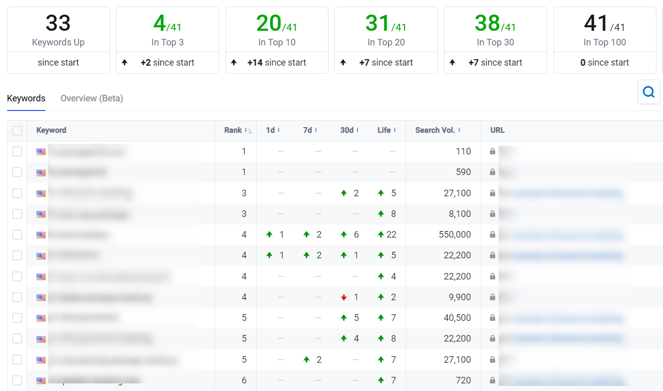 Keyword ranking looks great too. Some of the high-volume keywords are now in the top 10 or even top 5!