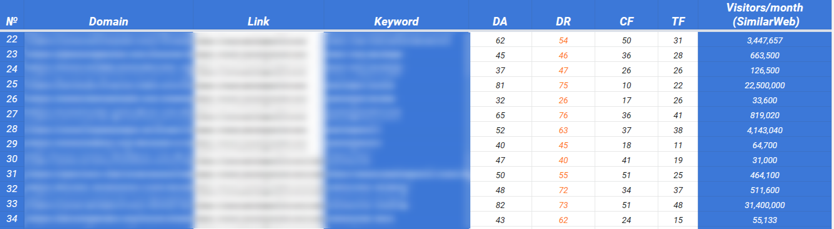 This helped us estimate the number of relevant backlinks, their sources and their metrics needed to achieve the best results.