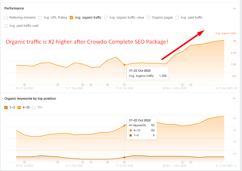 “We chose the SEO agency Crowdo because our traffic suddenly dropped, and what we did before had no effect. We searched for the cause but couldn’t find it. Crowdo did a great job of resolving this. Not only did they find out why our organic traffic plummeted, but they also tripled it in 3 months. Crowdo put together an excellent Custom SEO Strategy for us and offered their Complete SEO Package, which solved our problem. Many thanks to the Crowdo team, especially Eugene, Crowdo’s SEO Expert!”