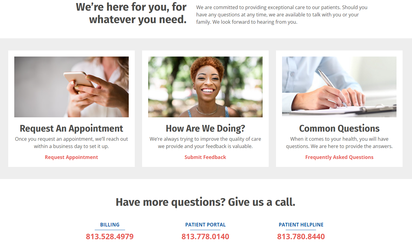 One form or phone number won’t cut it for all needs! Guide visitors to the right resource.