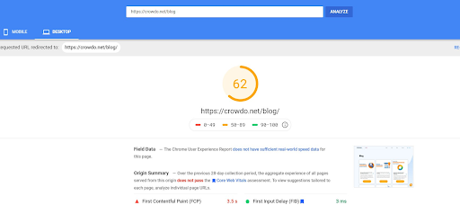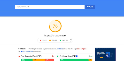 In order to test the core web vitals score, we’re going to use the Google PageSpeed Insights.