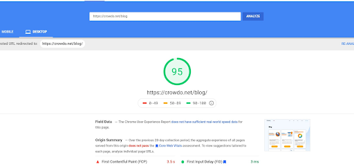 Right now our blog scores 90+ on desktop and 60+ on mobile, which is much higher than average and much better than what we had before.