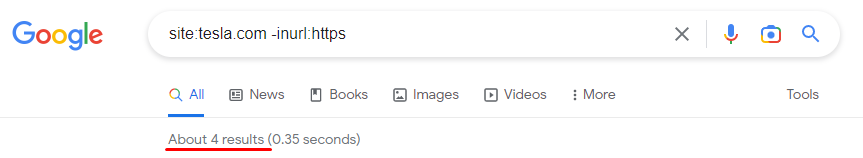 To check non-HTTPS pages in just a few seconds, let’s use the following special Google Search operators that exclude any HTTPS results, thus leaving only HTTP ones. It’s worth noting that some pages might not be reindexed to HTTPS yet but can lead to an HTTPS page.