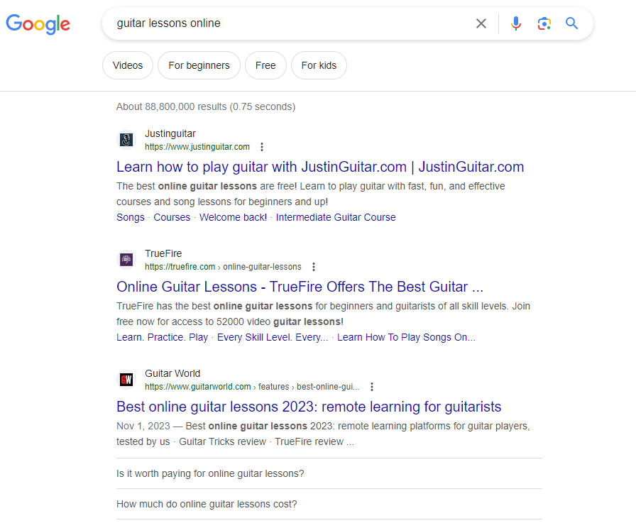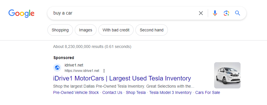 Here’s an example of a paid search result: